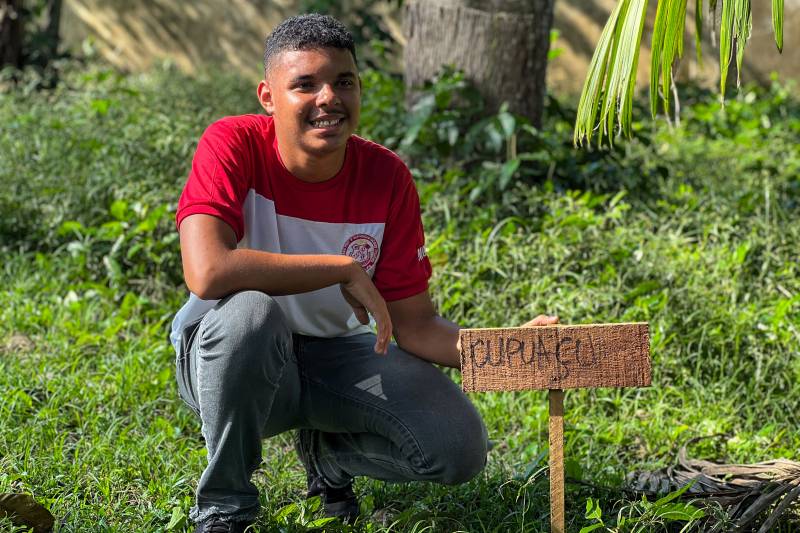 “Eu ajudei nos plantios, fizemos diversas quebras de dormência, fizemos até as bolas de semente que misturam com a argila e a semente também. Nós fizemos as placas para apresentar os tipos de plantas e árvores que existem. Achei incrível, bem criativo e também achei muito peculiar para a gente aprender. Isso impacta na nossa sabedoria, nós tiramos a sabedoria da natureza, das plantas e através do estudo delas. E, para o futuro, eu quero ser biólogo, para ensinar as pessoas que a natureza também tem os seus direitos, de ser respeitada pelo homem”, relata Albert Pereira, alunos e participante do projeto.