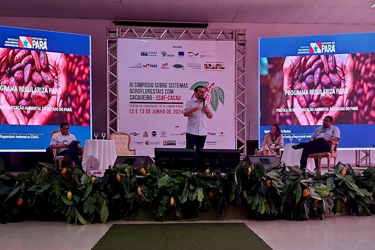 A Secretaria de Estado de Meio Ambiente e Sustentabilidade (Semas) participou do III Simpósio sobre Sistemas Agroflorestais com Cacaueiro (SSAF-CACAU), realizado nos dias 12 e 13 de junho no município de Altamira, na região do Xingu. O evento é uma iniciativa da Comissão Executiva do Plano da Lavoura Cacaueira (CEPLAC/SDI/MAPA), do Instituto de Pesquisa Ambiental da Amazônia (IPAM), da Sociedade Brasileira de Sistemas Agroflorestais (SBSAF), do Governo do Estado do Pará, através da Secretaria de Estado de Desenvolvimento Agropecuário e da Pesca (SEDAP), e da Cooperação Brasil-Alemanha para o Desenvolvimento Sustentável (GIZ).