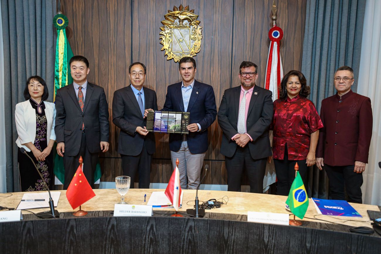 “A Universidade do Estado do Pará tem buscado a internacionalização por meio de parcerias como essa, com uma das universidades mais importantes da China. E esse acordo permite que possamos fortalecer o intercâmbio e o conhecimento. Dessa forma, permite que nossos alunos e nossos professores possam se capacitar na China, um dos países que mais acumulam conhecimento, ciência, tecnologia e inovação”, disse Helder Barbalho.Governador Helder Barbalho, o chanceler professor da Universidade de Shandong, Feng Jikang, o reitor Clay Chagas e demais autoridades na assinatura do acordo