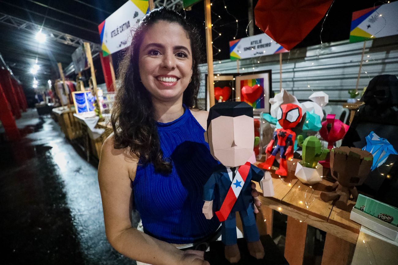 Empreendedorismo e tecnologia - No espaço da Feira de Economia Criativa, outra atração do evento, cerca de 20 empreendedores expõem seus trabalhos. Lilian Lobo, uma das expositoras, mostrou ao público as peças artesanais da sua empresa, confeccionadas em paper craft. “Esse evento traz visibilidade pro paper craft, que é uma arte não tão conhecida em Belém, uma arte sustentável feita em papel. É muito bom pra dar espaço ao nosso trabalho”, disse a empreendedora.