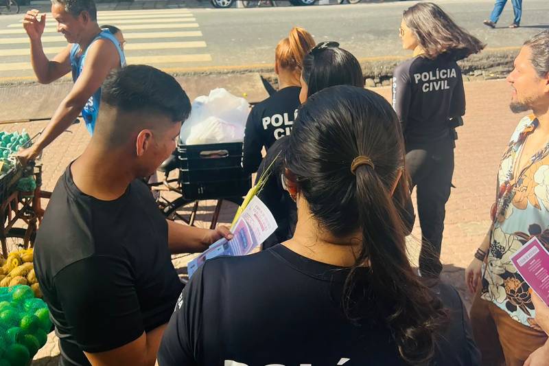 Durante a ação, policiais civis falaram sobre as formas de violência contra a mulher e informaram os serviços ofertados pela Polícia Civil para enfrentar a violência de gênero. “A Polícia Civil intensifica ações nas feiras para prevenir violência doméstica, educando e orientando comerciantes e frequentadores. Com diálogo e conscientização promovemos um ambiente seguro e acolhedor para todos. Juntos, construímos uma comunidade mais protegida e empática contra a violência”, ressaltou a delegada Ariane Melo, diretora da DAV.