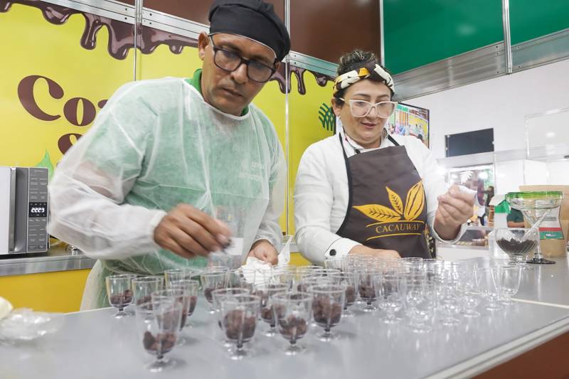 A variedade e qualidade dos produtos apresentados mostram o potencial do Pará no segmento de cacau e chocolate Conhecimento - Um dos estandes mais visitados no festival foi o da Federação da Agricultura do Estado do Pará (Faepa), que ofereceu receitas de chocolatiers e produtores formados pela Escola Indústria de Chocolate, do Serviço Nacional de Aprendizagem Rural (Senar).