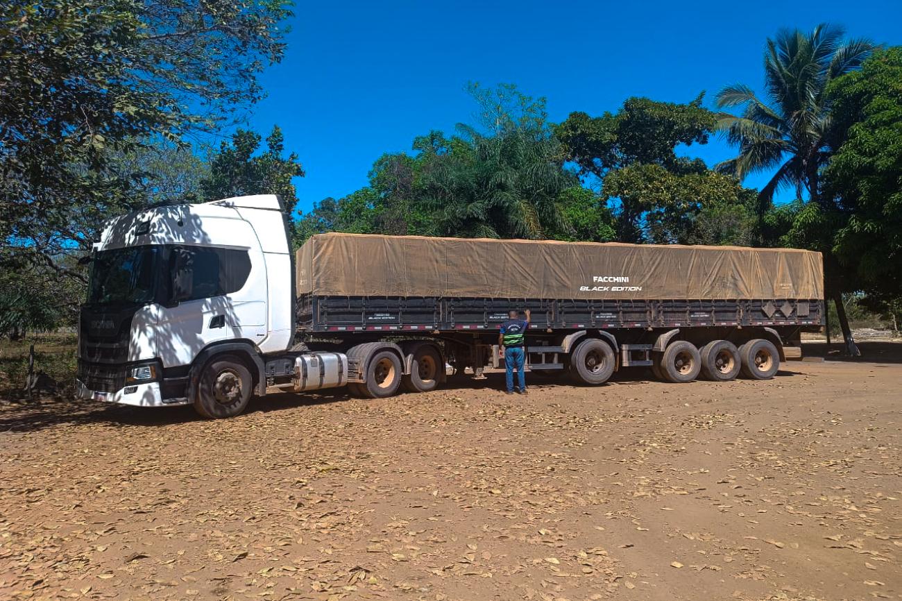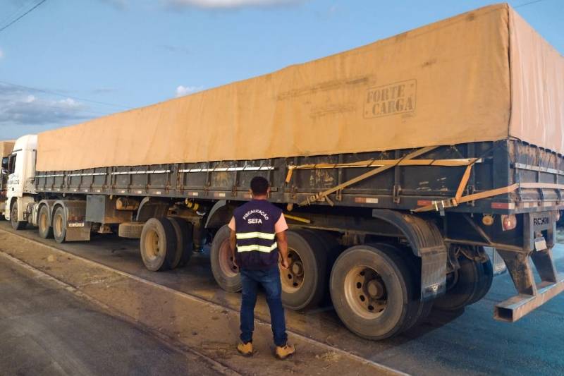 Um dos caminhões retidos pela fiscalização da SefaEm fiscalização realizada pela equipe da Coordenação de controle de mercadorias em trânsito do Araguaia, no sul do Pará, equipe da Secretaria de Estado da Fazenda (Sefa) apreendeu 162 toneladas de feijão, no KM-15 da Rodovia PA-447, no município de Conceição do Araguaia. A carga aprendida na quinta (13) e sexta-feira (14) foi avaliada em R$ 73.077,76.