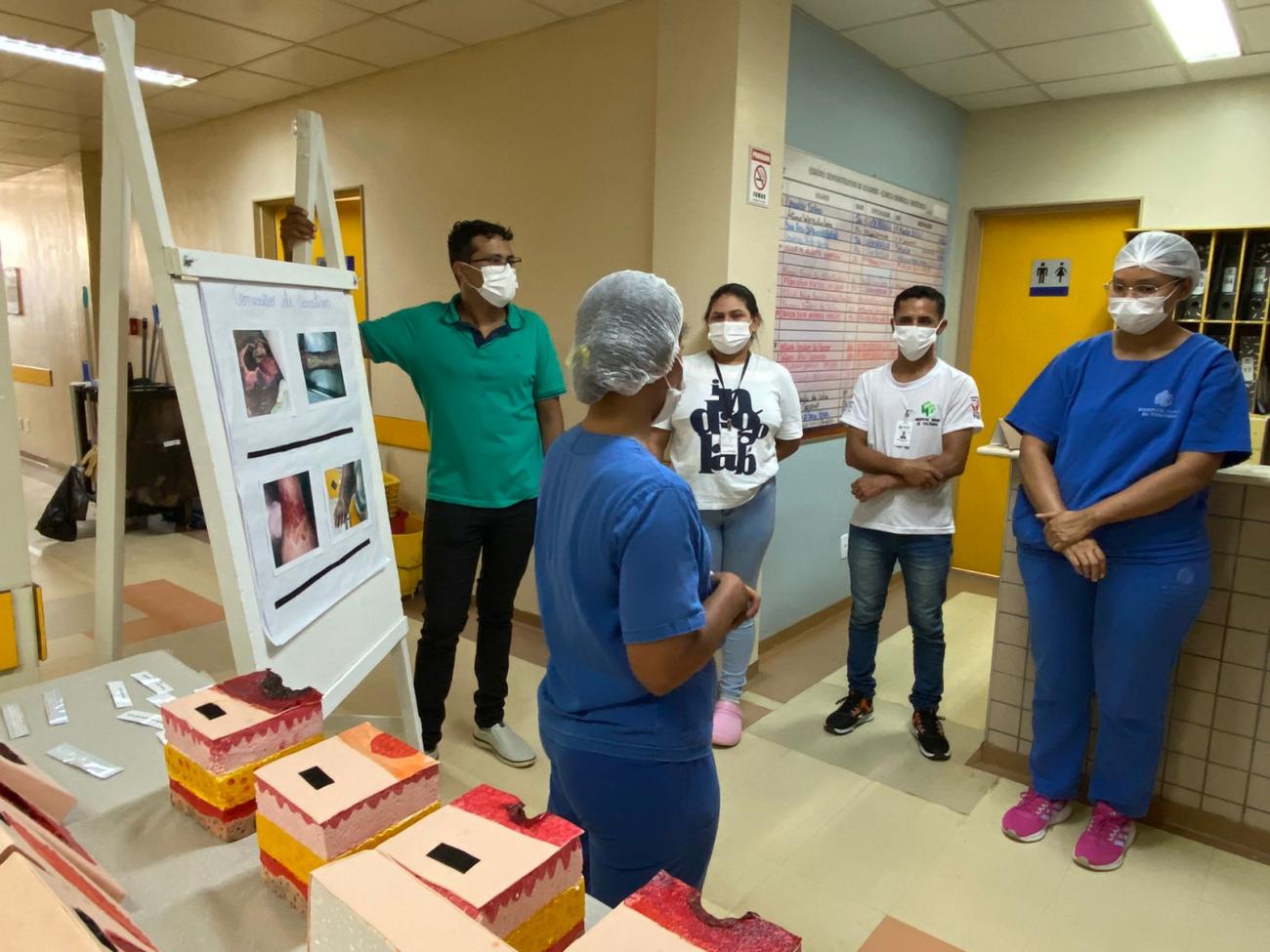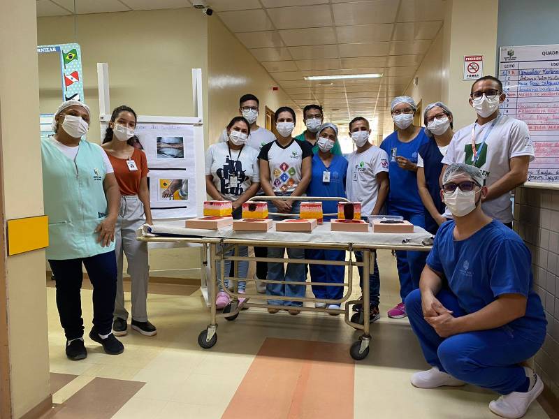 A equipe responsável pela atividade iniciou a capacitação na última semana e segue sendo realizada em todos os setores de assistência, abrangendo enfermeiros e técnicos de Enfermagem. A capacitação, que já conta com a participação de 83 profissionais, inclui o uso de estruturas realistas em isopor, confeccionadas pela própria comissão. Essas estruturas são projetadas para simular todos os estágios das lesões por pressão, abrangendo desde as diferentes camadas da pele até os tipos de tecidos desvitalizados e o tecido viável.