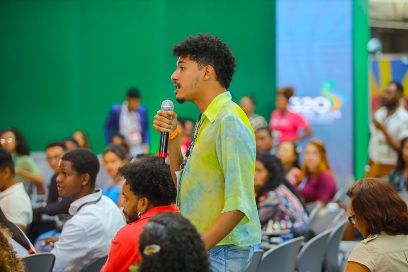 João Pedro Gomes é estudante da Escola Estadual de Ensino Médio Albanízia de Oliveira Lima. Ele e seus colegas participaram da abertura do Y20, no Teatro da Paz, e também estiveram no segundo dia do evento, no Hangar, para aprender e contribuir com os diálogos. "É um evento muito importante para mostrar que é necessário o nosso engajamento, da representatividade juvenil, para mostrar que temos que fazer as escolhas certas para o nosso futuro", comenta o estudante.
