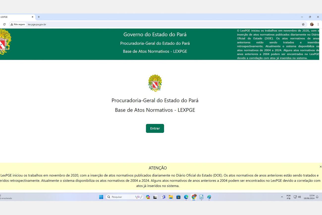 Serviço – Para ter acesso ao LEXPGE, basta acessar o site da PGE ou o link oficial: lex.pge.pa.gov.br.