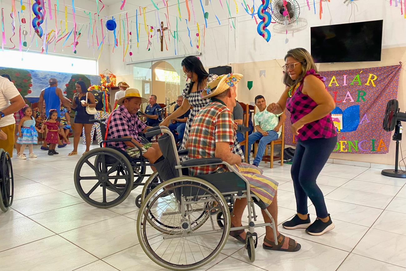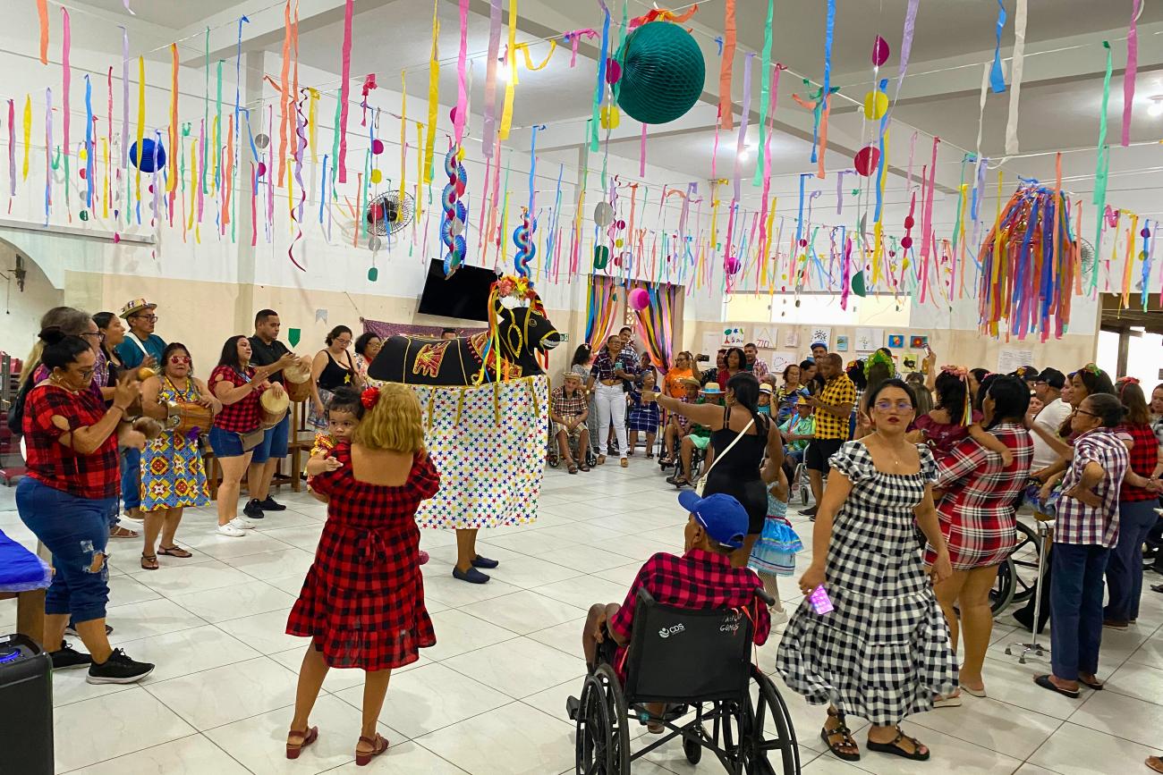 Com alegria, dança e muita motivação, os idosos acolhidos no Lar da Providência, em Belém, participaram do festejo junino conhecido como “Arraiá do Lar”. Embalados pela banda de música do Corpo de Bombeiros, os acolhidos relembraram as canções que marcaram época, as comidas típicas e as apresentações que envolvem a quadra junina.