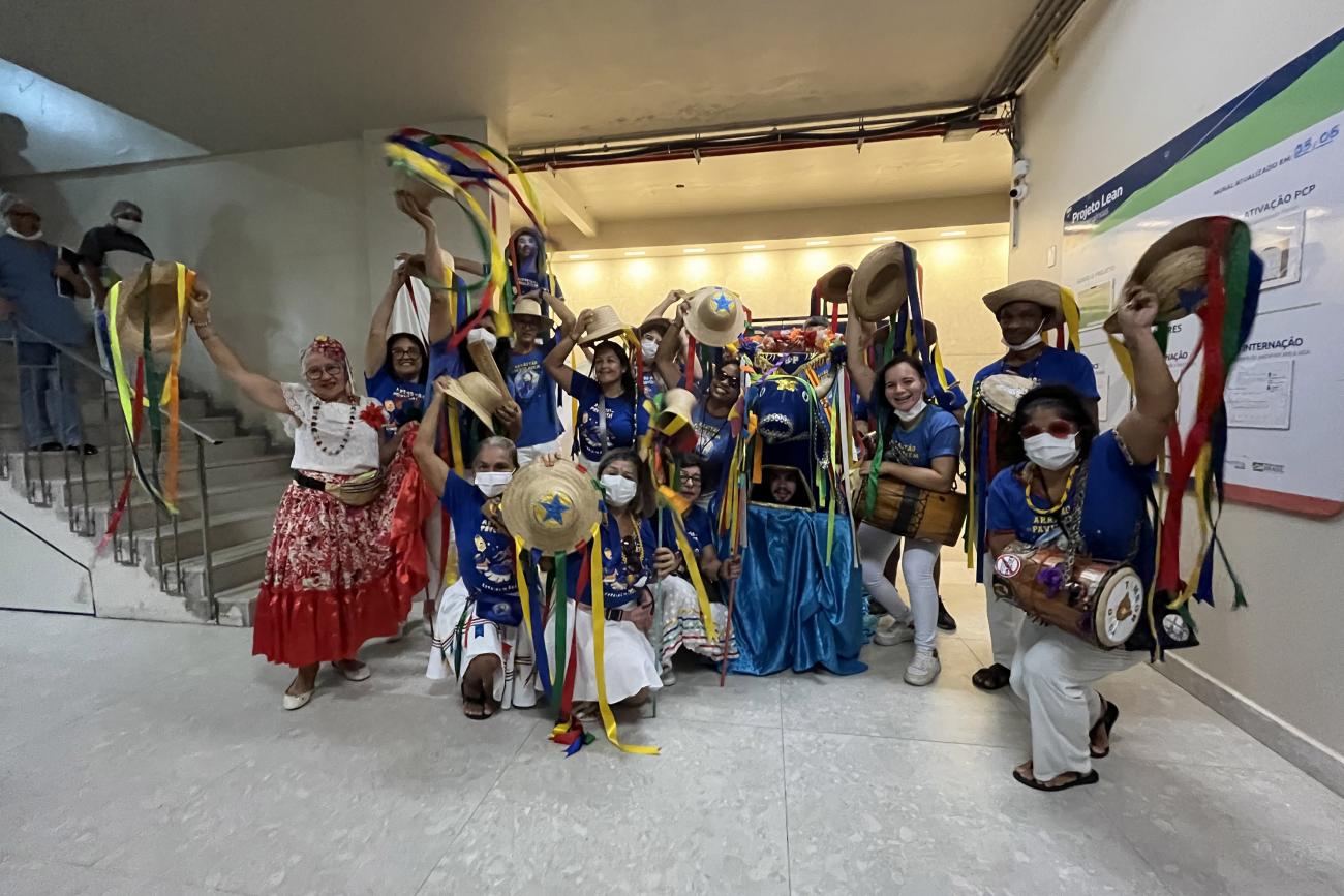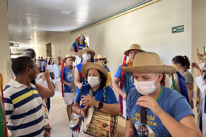 “As expressões artísticas reduzem o estresse ocasionado pelo adoecimento, aumentam a sensação de bem-estar e humanizam o processo do cuidar. Aqui, recebemos pacientes acometidos por doenças graves e que necessitam de intervenções que amenizam a ansiedade e oportunizem momentos de ludicidade, entretenimento e socialização. Também é uma maneira de ajudá-los a enfrentar os desafios impostos pela hospitalização e inseri-los nesse contexto junino para que não fiquem à margem da sociedade”, destacou a chefe da Divisão de Terapia Ocupacional, Márcia Nunes.