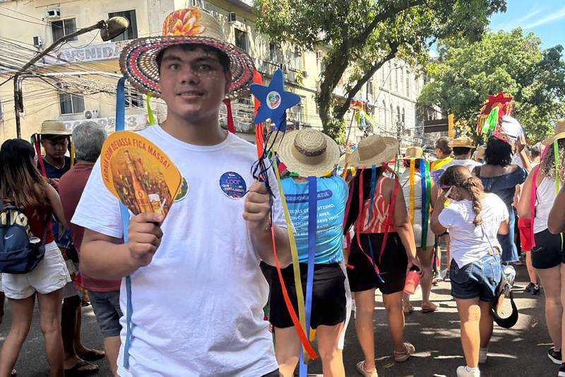 “Eu danço, também danço Arraial do Pavulagem e tenho várias coreografias. Eu usava a referência da música do Arraial do Pavulagem, me apresentava e estive lá na caminhada, é bom estar presente no Arraial do Pavulagem para poder apresentar a nossa cultura”, comenta o estudante.