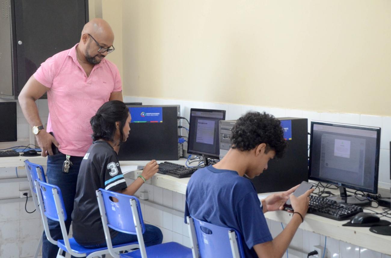 De turma em turma, os estudantes do Mário Chermont se dirigiam para a sala de informática, a fim de contribuir para a votação. No local, além de orientações sobre o passo a passo, também contou com professores para auxiliar os participantes no voto.