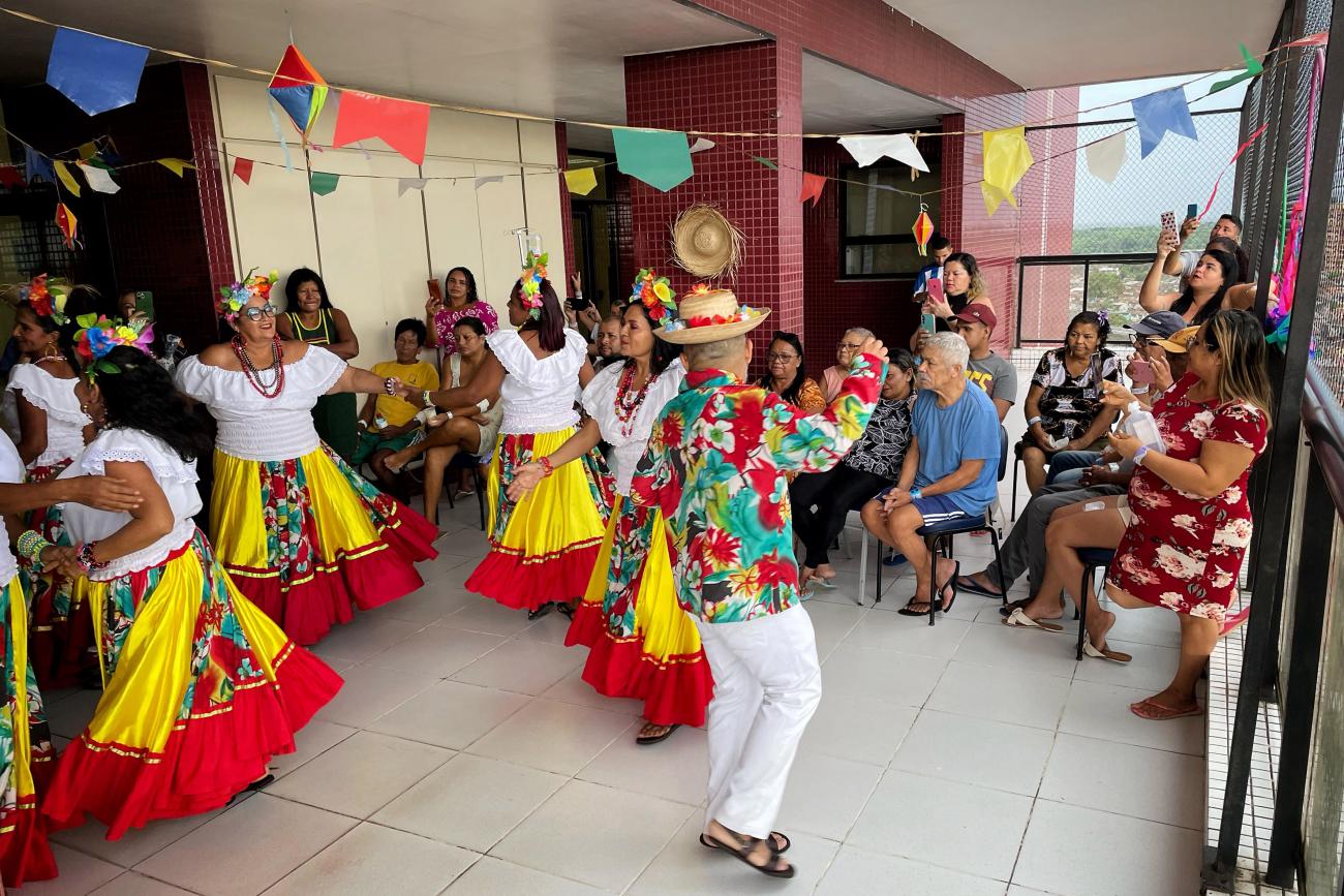 Pacientes de longa permanência no Hospital Regional Dr. Abelardo Santos (HRAS), no Distrito de Icoaraci, em Belém, foram convidados a participar de uma tarde de música e dança durante o “Arraiá da Gentileza”. A iniciativa, realizada nesta sexta-feira (21), no setor de nefrologia, faz parte das ações de humanização que visam melhorar a rotina e o tratamento dos usuários durante os festejos juninos.
