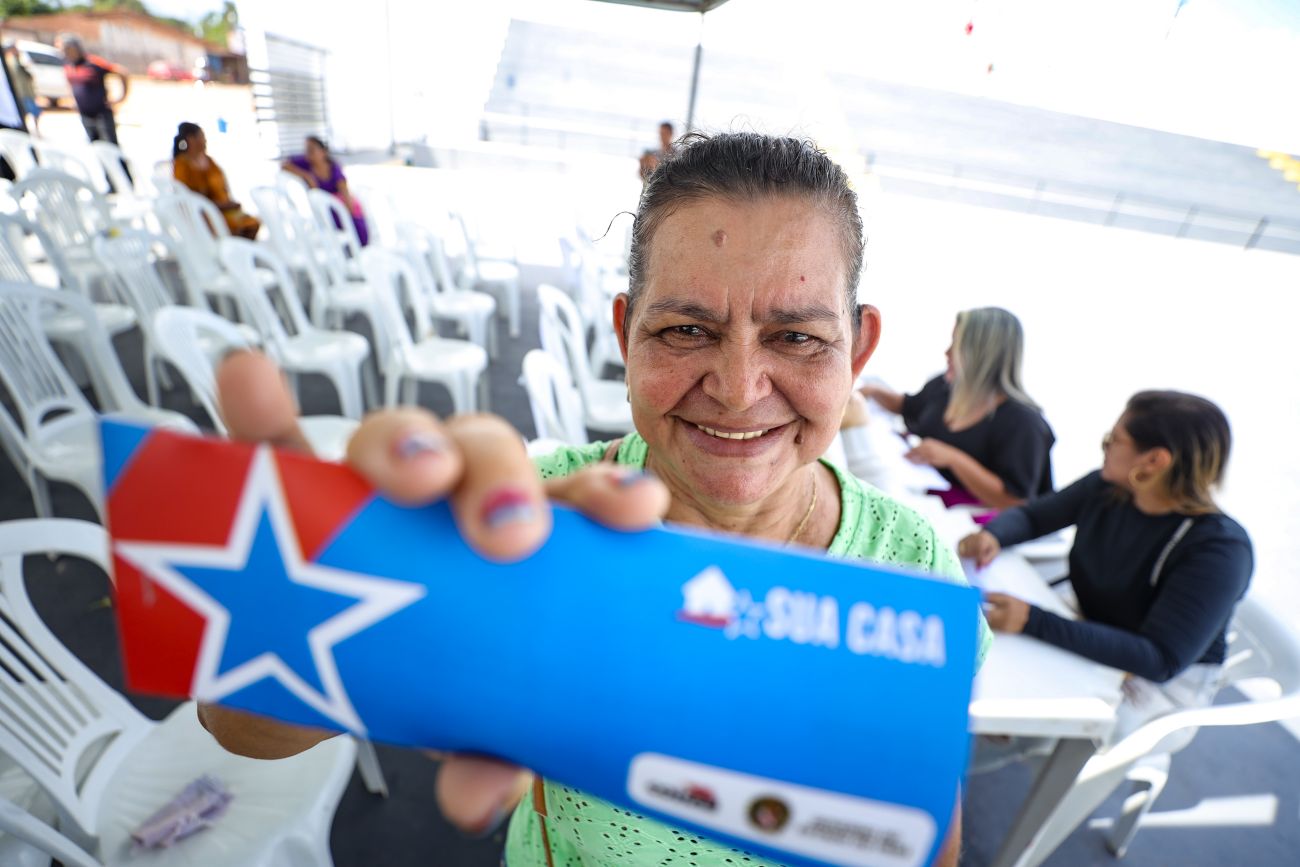 Maria Lucilene Souza, uma das contempladas pelos recursos do 'Sua Casa' em AlenquerEm mais uma etapa do Programa "Sua Casa", o governador Helder Barbalho entregou para 265 famílias no município de Alenquer, no oeste paraense, recursos da política pública do Estado destinada à melhoria da estrutura das moradias, gerenciada pela Companhia de Habitação do Pará (Cohab).