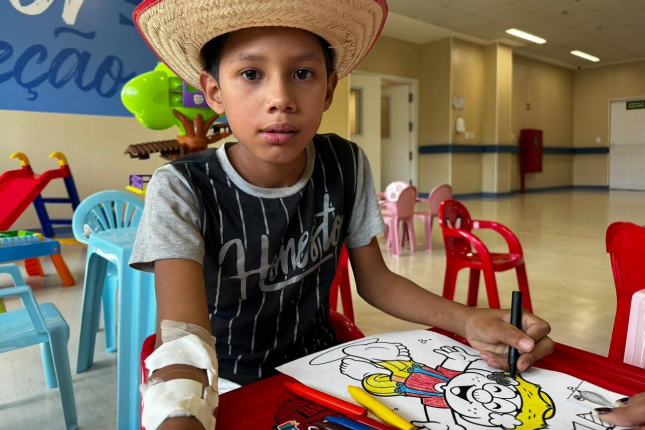 Iriane Sousa, mãe do paciente João Otávio de Sousa da Silva, de 10 anos, destacou satisfação dela em presenciar o filho animado, interagindo com as outras crianças.