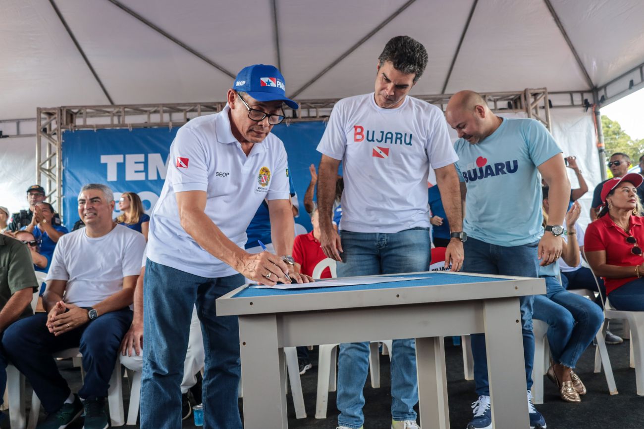 “Hoje assinamos a ordem de serviço para mais três quilômetros de pavimentação asfáltica, dentro do Programa 'Asfalto Por Todo o Pará', para a cidade de Bujaru. Esse município tão importante, que acaba de ter finalizado seis quilômetros de pavimentação, agora vai iniciar mais três quilômetros. Essa é uma iniciativa que traz dignidade para as pessoas, facilita a mobilidade, tira as pessoas da lama, da poeira. Vamos continuar trabalhando por mais mobilidade urbana nas nossas cidades", pontuou o secretário de Obras Públicas, Ruy Cabral.