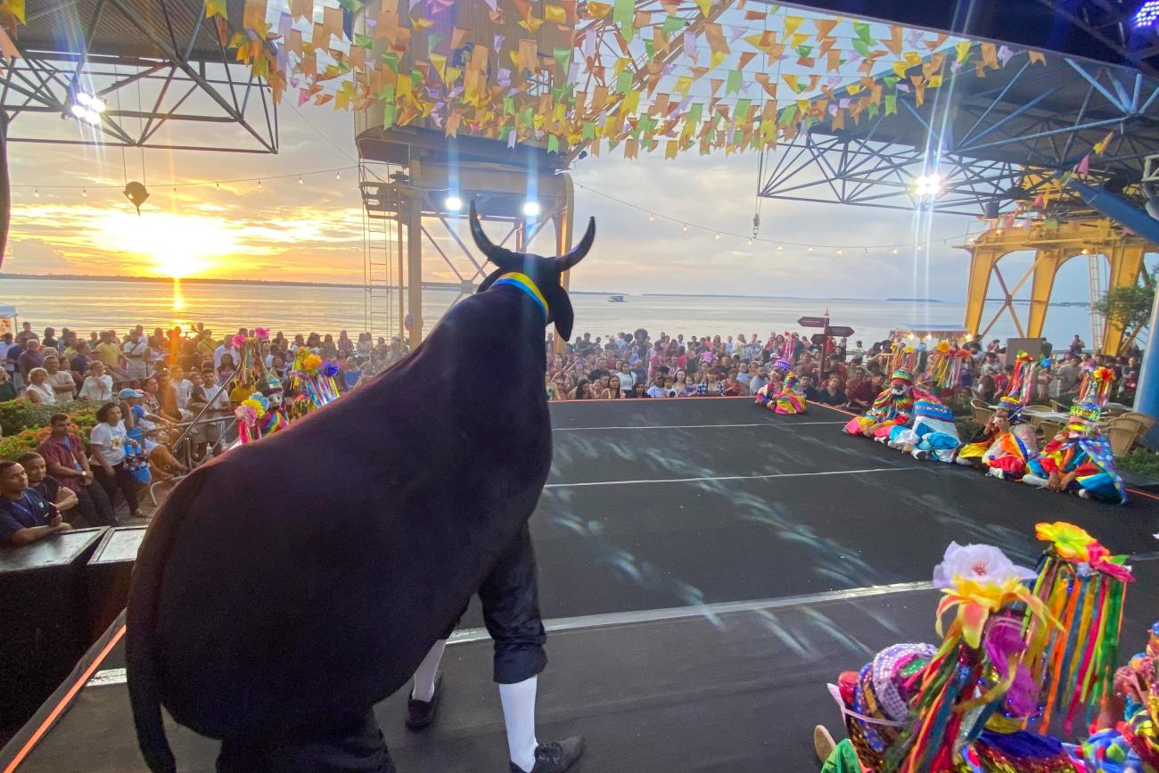 O casal esteve pela segunda noite consecutiva na Estação, junto com a filha Ana Luiza, de 1 ano, e destacou a valorização da cultura regional no evento. “Essa programação é maravilhosa, principalmente quando a gente pensa em um passeio em família diferente, tendo esse contato com uma amostra do nosso patrimônio cultural, que é essa festa junina cheia de símbolos paraenses. Fiquei muito feliz de trazer a minha filha, sair de casa com ela e mostrar o que realmente é essa cultura”, disse Aline.Apresentação de bois: diversão garantida à margem da Baía do Guajará