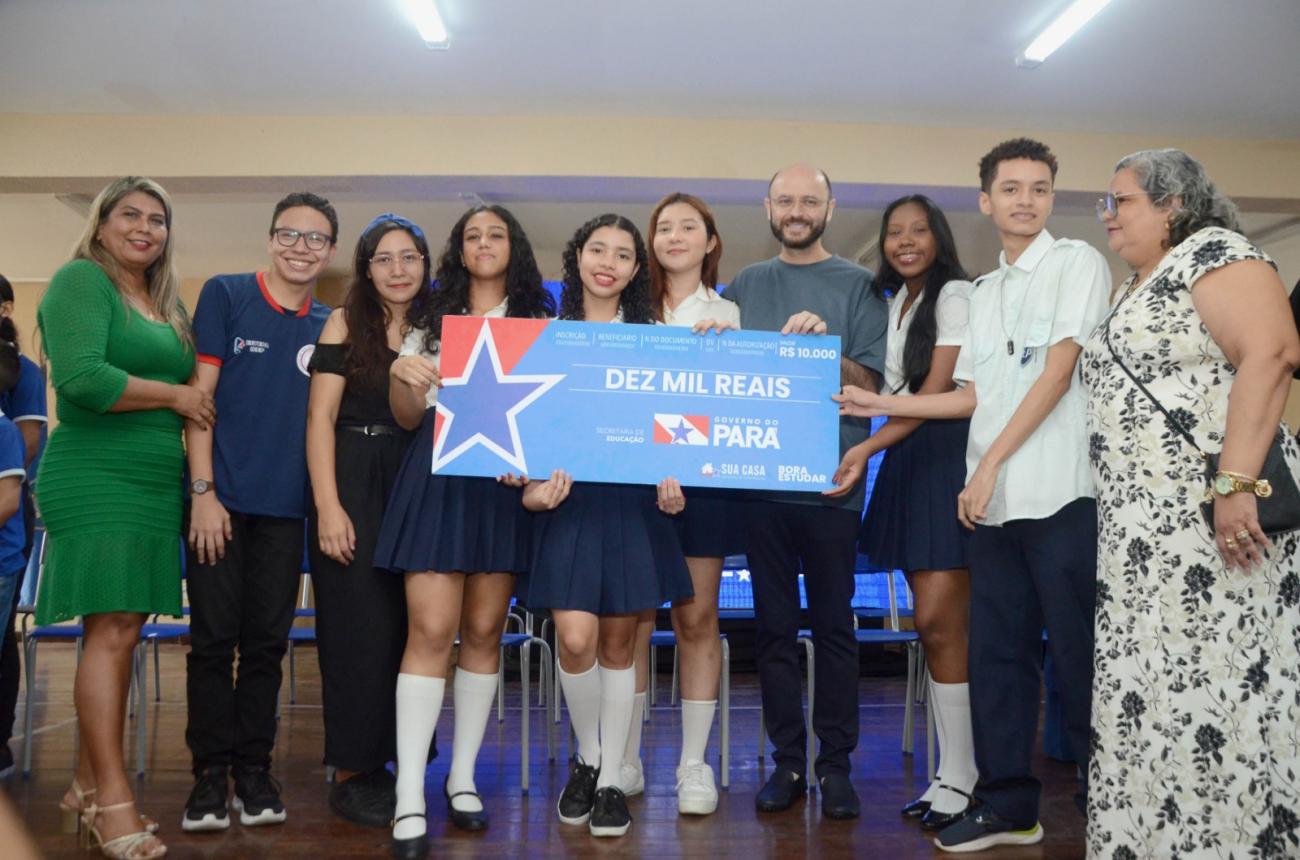 Entre os benefícios, também está o Programa "Sua Casa" que garante a construção, reforma, ampliação, melhoria ou adaptação da casa dos estudantes. A cerimônia de entrega dos cheques reuniu os alunos das escolas públicas estaduais e famílias deles, além de professores, representantes da Secretaria de Estado de Educação (Seduc) e autoridades no auditório da Escola Estadual de Tempo Integral Visconde de Souza Franco, no bairro do Marco, em Belém.