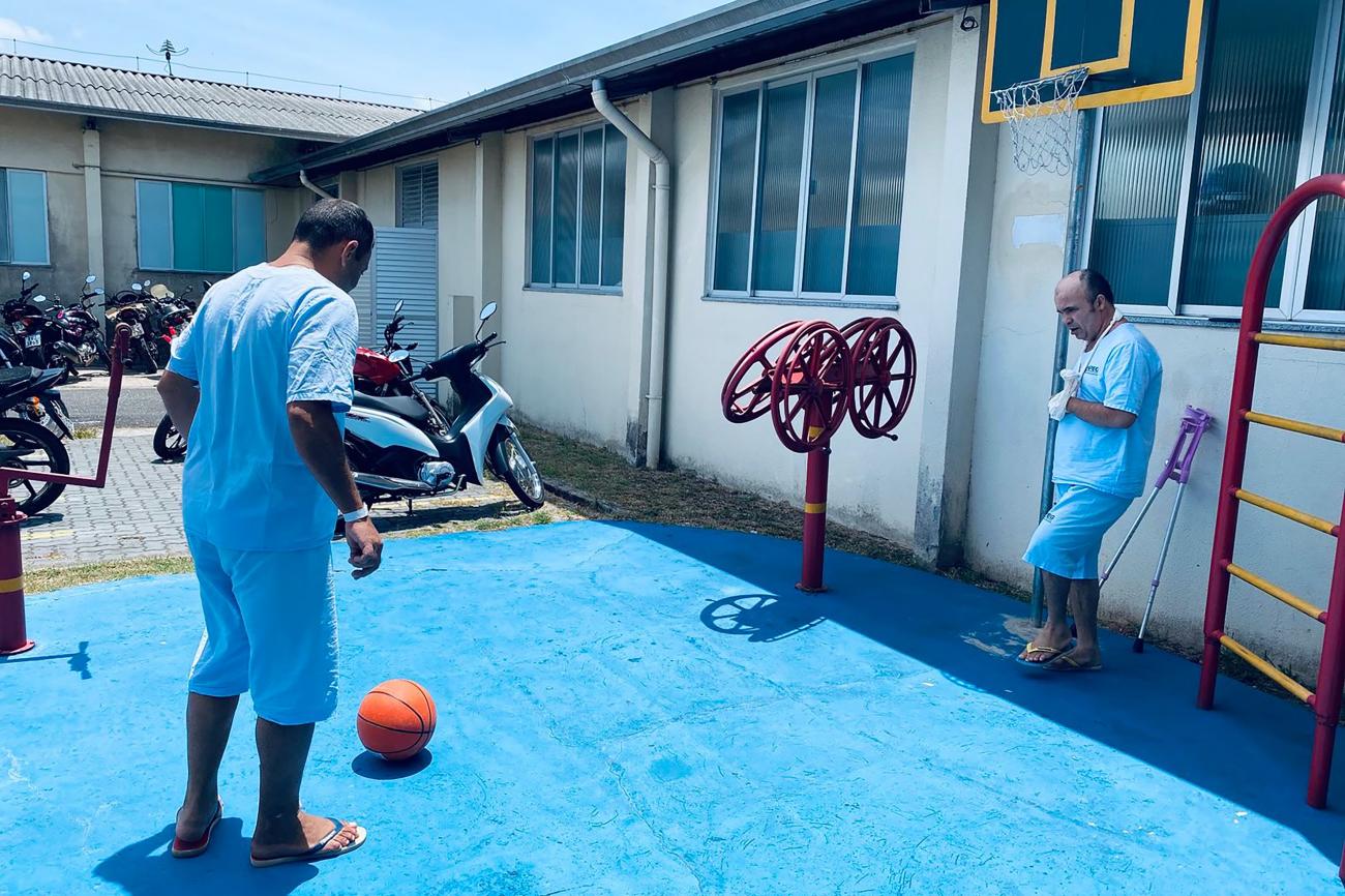Estrategicamente pensada em reabilitar pessoas que tiveram algum tipo de trauma, tubo de PVC, panelas velhas, pedaços de cama, de maca, de bancos, chapas de ferro, cadeira de rodas quebradas e até bandejas, se transformam em aparelhos de ginástica e de esporte. Ao total, são sete equipamentos além de uma rede de basquete.