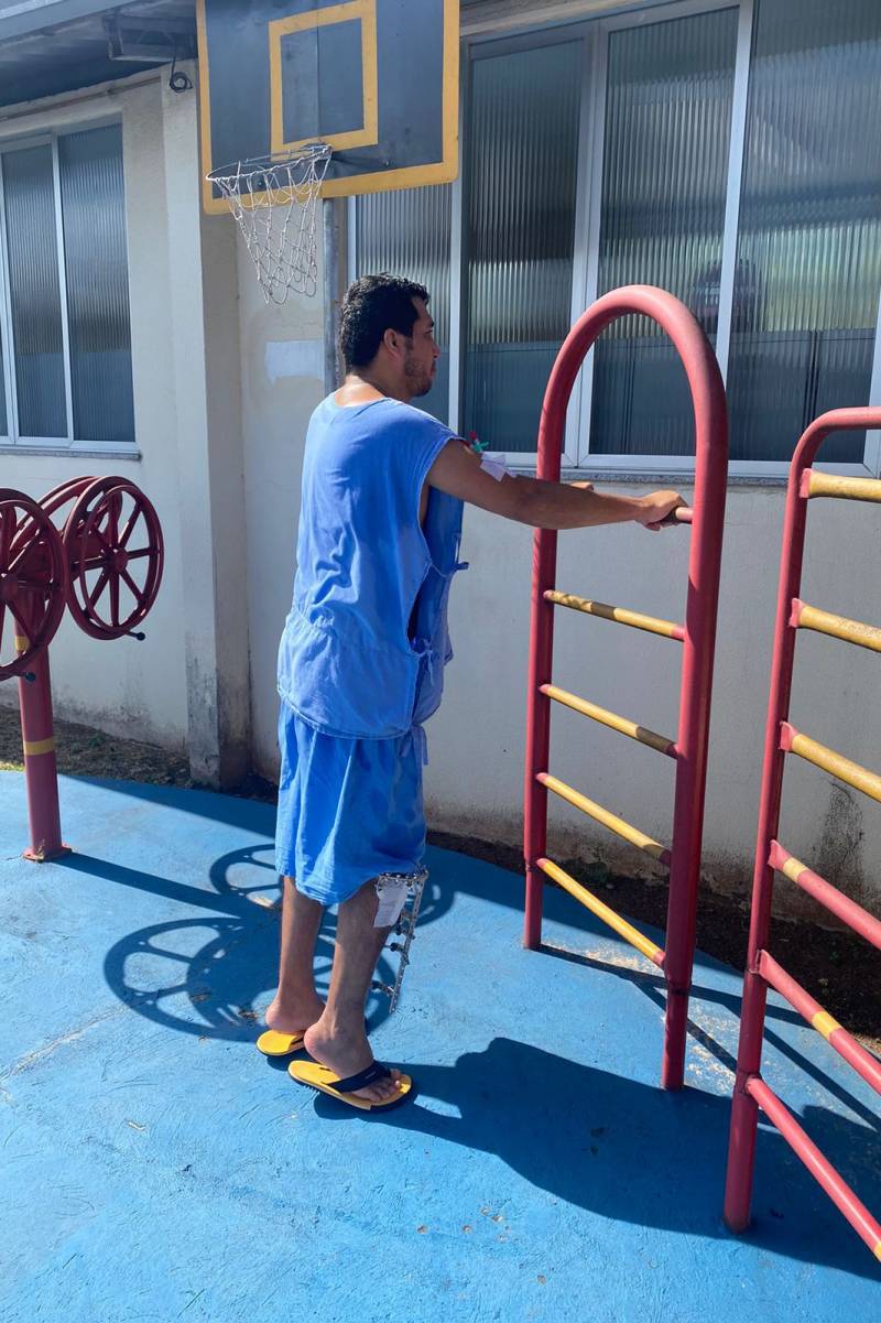 A Academia Sustentável é responsável em aliar a prática da atividade física com a interação social, além de contribuir para a melhoria da qualidade de vida e do bem-estar dos usuários. Há dois anos, Silvano da Silva Rocha, de 39, mudou sua rotina e precisou passar por diversos procedimentos cirúrgicos para tratar de uma fratura na perna direita. O vigilante se envolveu em um acidente de moto em abril de 2022. "Já fiz vários procedimentos. Atualmente estou em tratamento de osteomielite de tíbia", comentou.