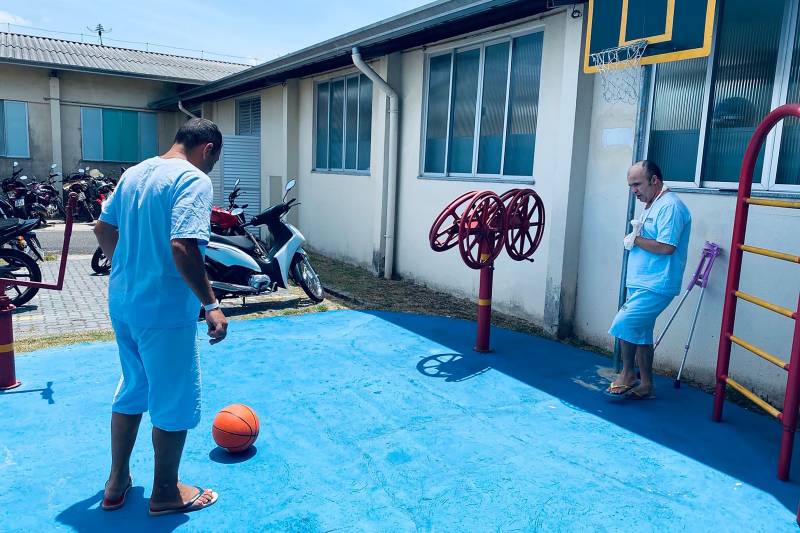 "Eles passam pouco tempo na academia, porém conseguem se distrair, ver pessoas, interagir com outros pacientes que estão na mesma situação. Além da prática de atividade física, a Academia Sustentável proporciona um ambiente de interação e contato social", pontua Liliam Gomes.