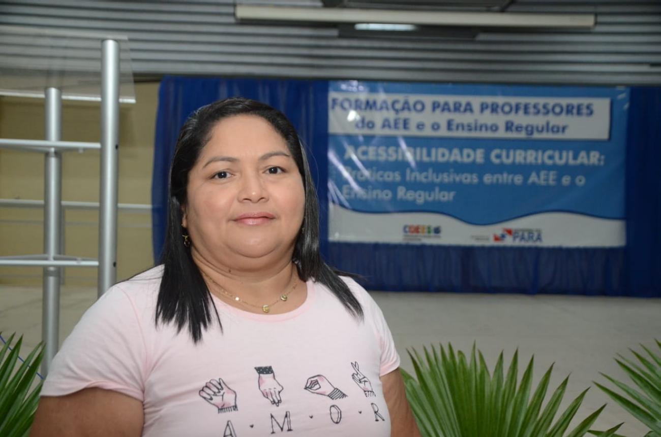 Silene Barreto: "necessidade de adaptação de recursos"Oriunda do município de Abaetetuba, a pedagoga Silene Barreto participou da oficina "Adaptação de Recursos Pedagógicos para alunos com Deficiência Visual". “Eu me inscrevi especificamente porque atendo estudantes cegos, e tenho certeza de que essa oficina vai me ajudar muito com o contexto que hoje a gente vive no ensino regular. Nós temos uma necessidade de adaptação de recursos. Eu penso que a oficina vai contribuir muito para a minha prática e o meu atendimento educacional especializado. Quando temos essas formações nos jogamos, pois é o momento de troca de experiência”, disse a pedagoga Silene Barreto.
