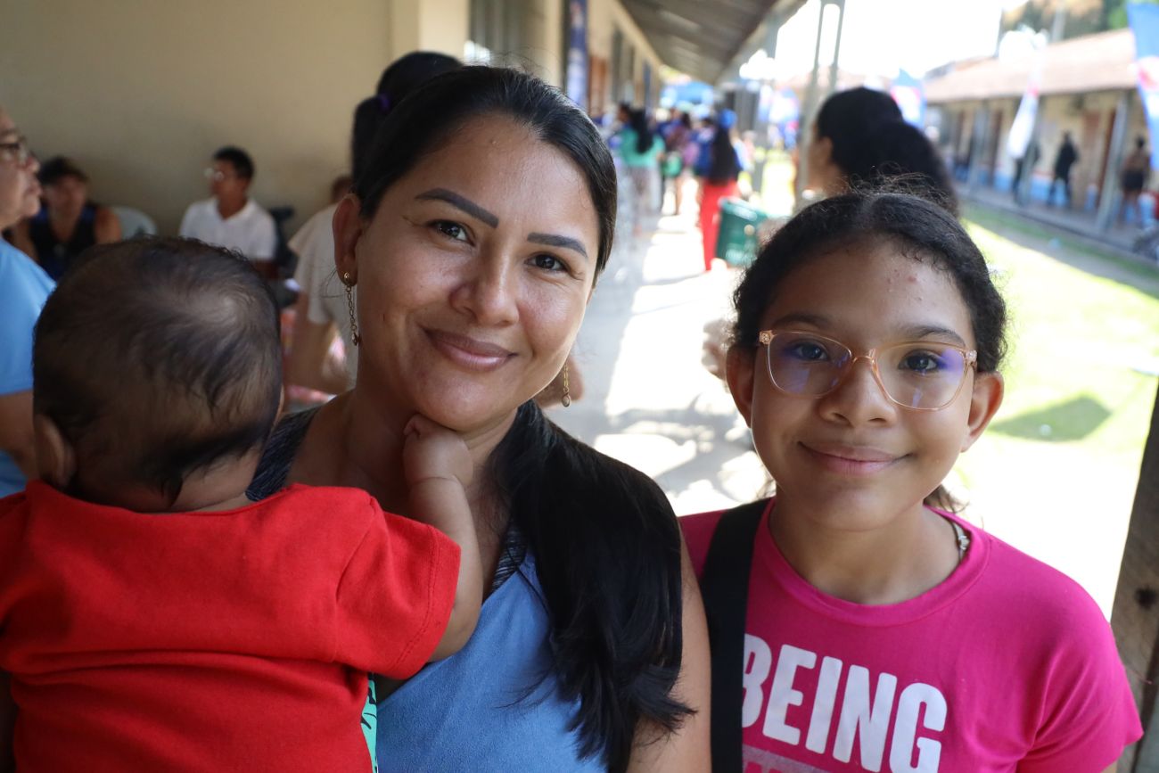 Marlete Ferreira e a filhaSaúde - Já a moradora Thelma Rodrigues, de 54, aguardava ansiosamente por uma consulta com médico clínico geral. Ela destacou que o atendimento foi rápido e humanizado. “É uma ação onde somos atendidos de forma rápida, geralmente esperamos dias para conseguir. Aqui vai ser rápido, vim cuidar da saúde e sempre que tiver esses serviços, eu venho participar”, disse.
