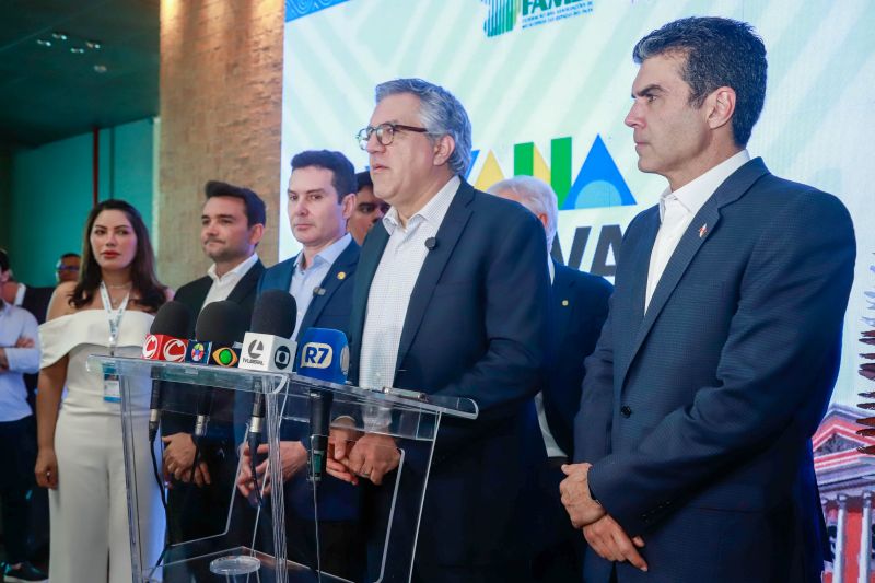 O governador do Pará, Helder Barbalho, durante a cerimônia de abertura do evento, ressaltou a importância de fortalecer relações federativas e institucionais.