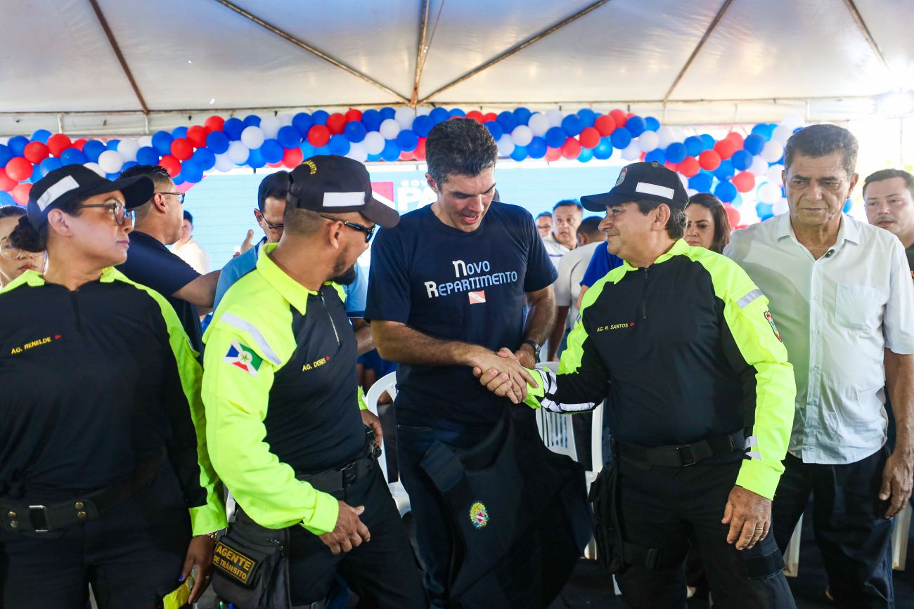 Helder Barbalho na entrega dos coletes para agentes de trânsito de Pacajá