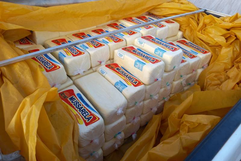 A mercadoria estava sendo transportada na carroceria de uma camionete que foi parada na barreira da Polícia Rodoviária Federal (PRF), na rodovia BR-010. Durante fiscalização de rotina, os agentes pediram para verificar a carroceria, que estava com excesso de peso, e encontraram 110 tabletes de queijo muçarela.