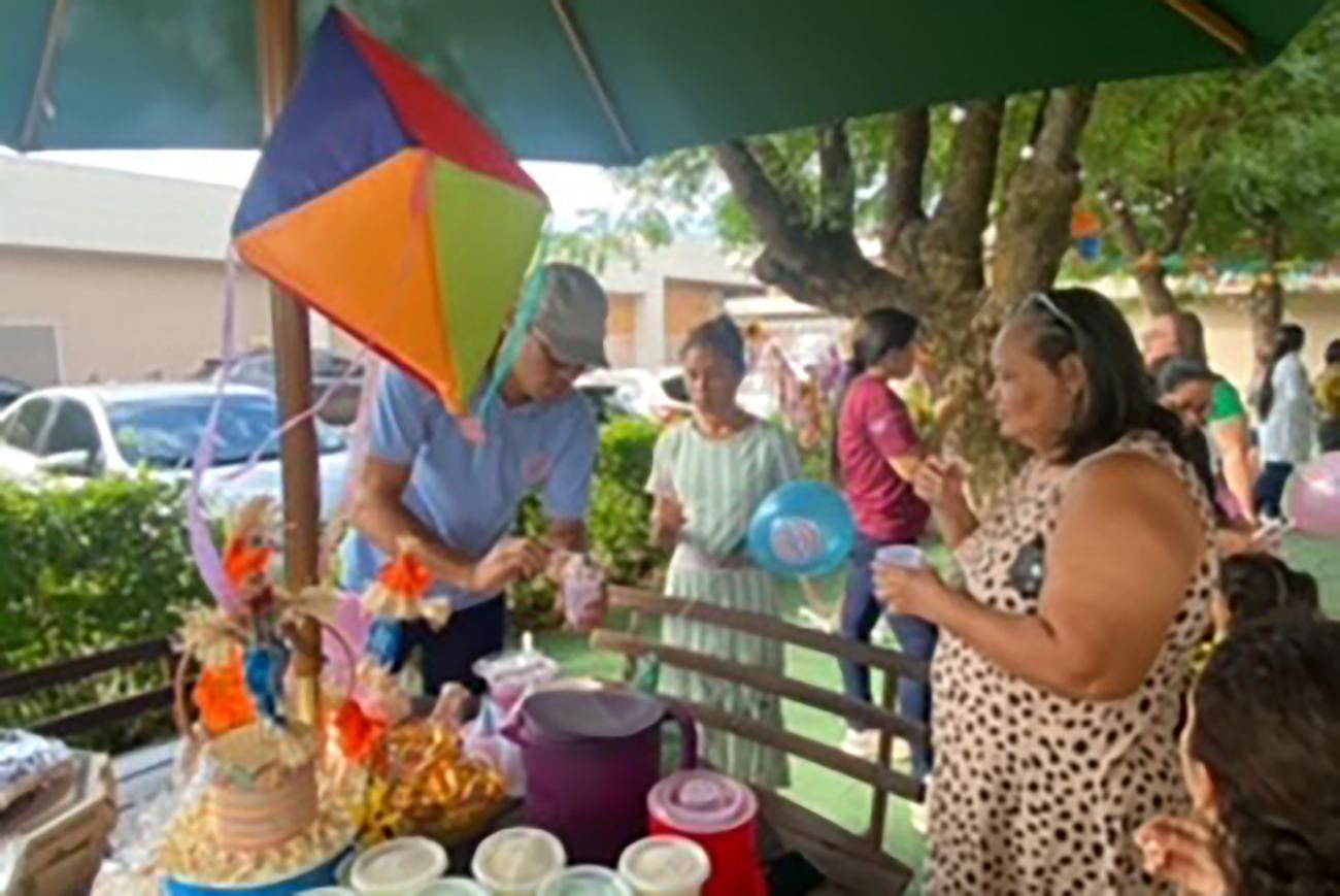 O Arraiá contou com brincadeiras tradicionais (pescaria e jogo de argolas), distribuição de pipoca, algodão doce, cachorro-quente e muita música. Crianças e pacientes adultos se uniram para aproveitar a programação. As crianças também ganharam brinquedos.