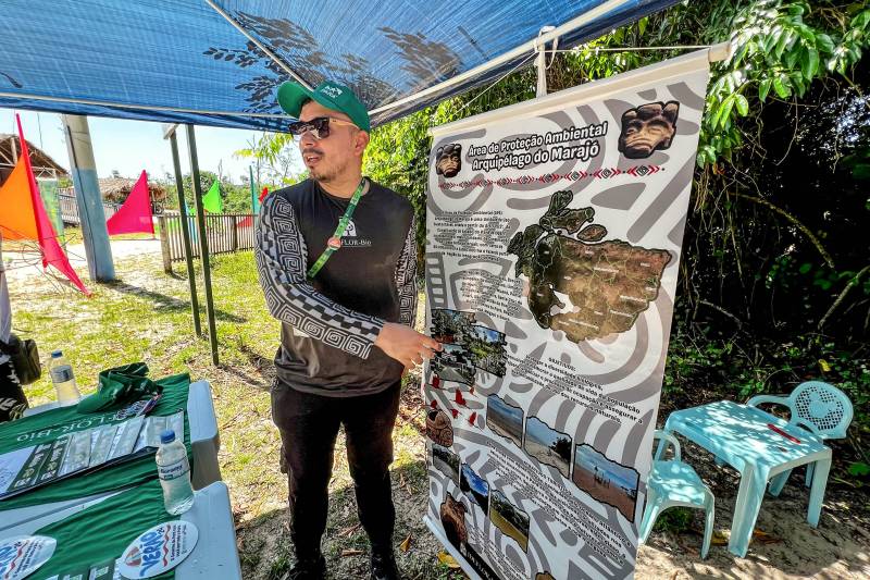 Hugo Dias gerencia a região administrativa do Marajó, e o escritório regional do Ideflor-Bio : "nossa gestão é compartilhada" “Por meio da educação ambiental, dos jogos lúdicos, trabalha desde a base das crianças até os adultos com a conscientização para mostrar que o Arquipélago do Marajó é uma UC que precisa ser respeitada de todas as formas. Para o turista entender, para o comunitário entender e para que a gente consiga fazer a gestão compartilhada de todo esse território imenso e vasto do Arquipélago do Marajó”, frisou o gerente.