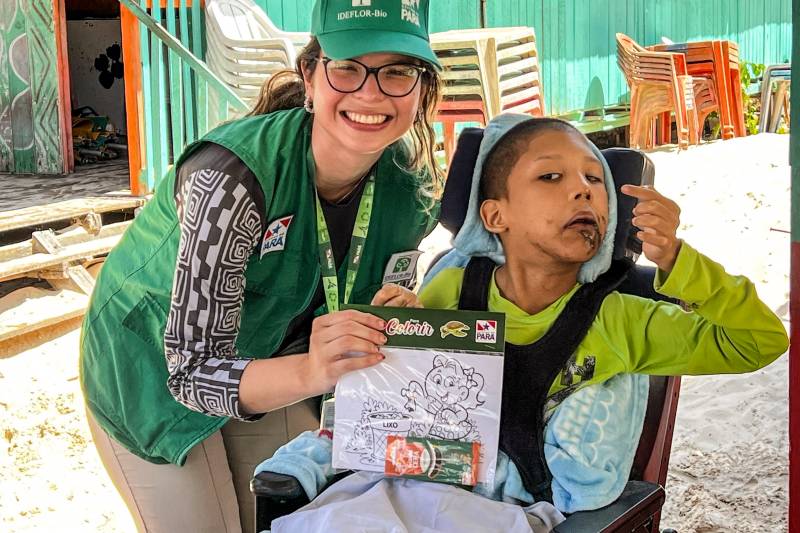 A iniciativa contou com a participação ativa das equipes da Gerência da Região Administrativa do Marajó (GRM) e do Escritório Regional do Marajó Oriental do Ideflor-Bio, que montaram um espaço especialmente destinado ao diálogo com a comunidade. Durante a programação, foram distribuídos viseiras, chaveiros e materiais educativos para as crianças, incluindo figuras para desenhar e giz de cera.