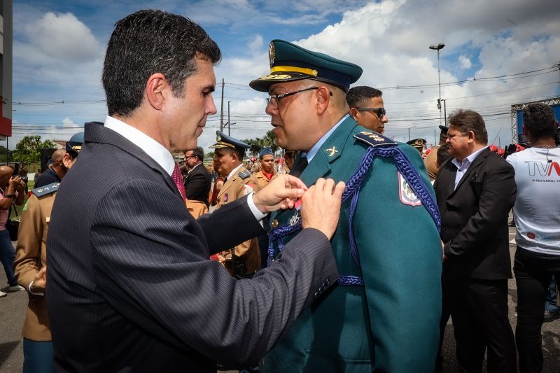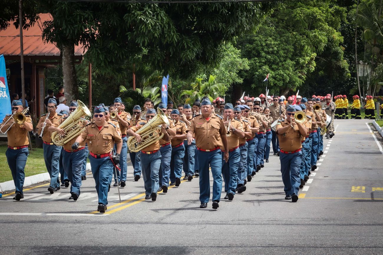 Governador Helder Barbalho presidiu a solenidade cívico-militar alusiva ao Dia do BombeiroOs investimentos do Governo do Pará em estrutura e capacitação profissional para fortalecer o Corpo de Bombeiros Militar foram destacados nesta segunda-feira (08), durante a entrega de 114 medalhas para integrantes da corporação e representantes da sociedade civil, em solenidade presidida pelo governador Helder Barbalho, em Belém.