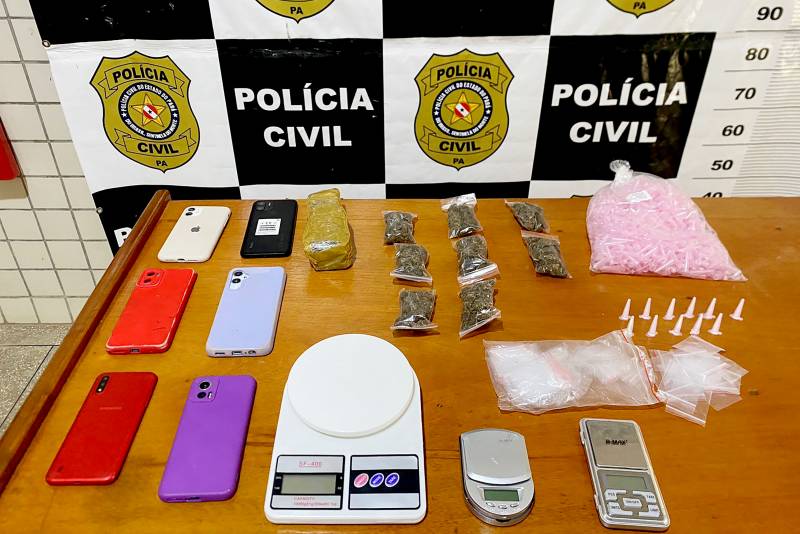 Além disso, foram apreendidos um tablete e pacotes com substâncias análogas à maconha, pinos de cocaína, balanças, diversos materiais para condicionar as drogas e aparelhos celulares.
