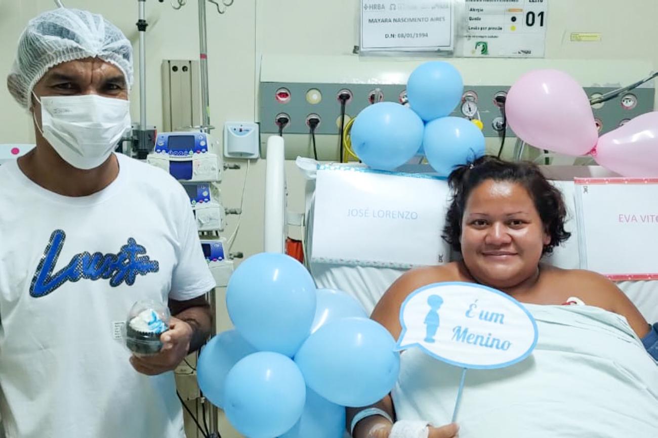 Em chá revelação especial, paciente internada na UTI do HRBA descobre que será mãe de um menino