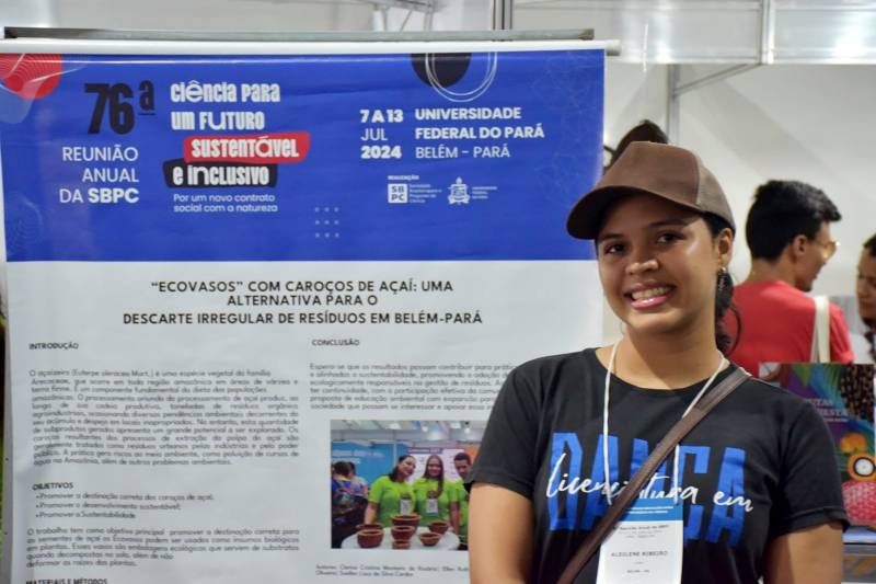 Alternativas para o descarte irregular de resíduos em Belém e o racismo ambiental foram temas sociais expostos pela Secretaria de Ciência, Tecnologia e Educação Superior, Profissional e Tecnológica (Sectet), nesta quinta-feira (11), no estande do órgão público na 76ª Reunião Anual da SBPC, que acontece na Universidade Federal do Pará (UFPA), em Belém. Os trabalhos foram apresentados por alunos da Escola de Ensino Técnico do Pará (EETEPA) Francisco Nunes, localizada no bairro da Marambaia, capital paraense.