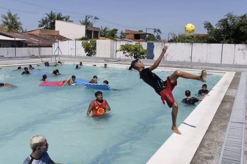 No segundo final de semana das férias, crianças, adolescentes e adultos aproveitaram a piscina e as atividades esportivas nos complexos de cidadania do governo do Estado