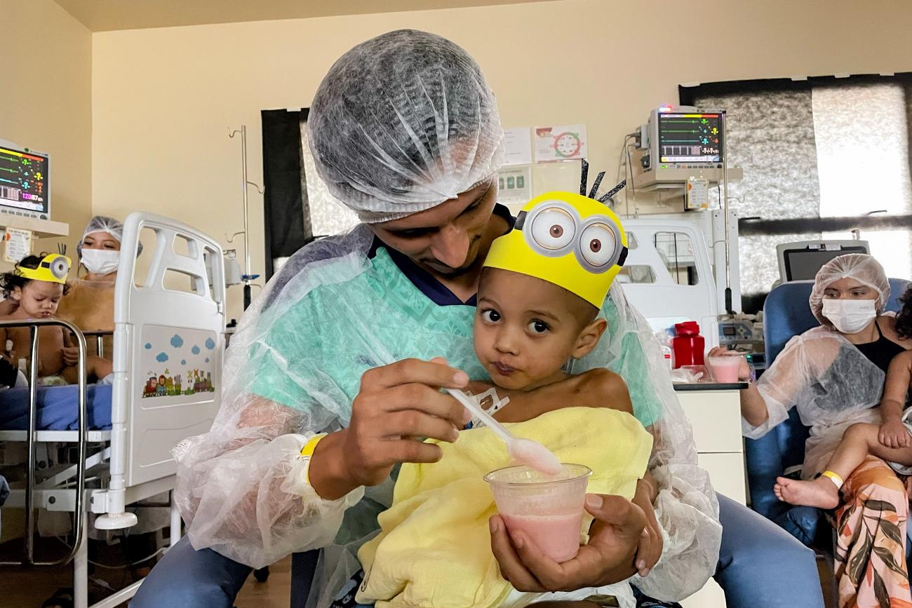Durante a exibição do filme, as crianças ganharam sorvete natural de morango, preparado pela equipe do Serviço de Nutrição e Dietética (SND) da unidade, de acordo com a condição clínica de cada paciente. Tudo foi pensado e preparado visando tornar o ambiente hospitalar mais acolhedor, contribuindo para o bem-estar de pacientes, pais e responsáveis.