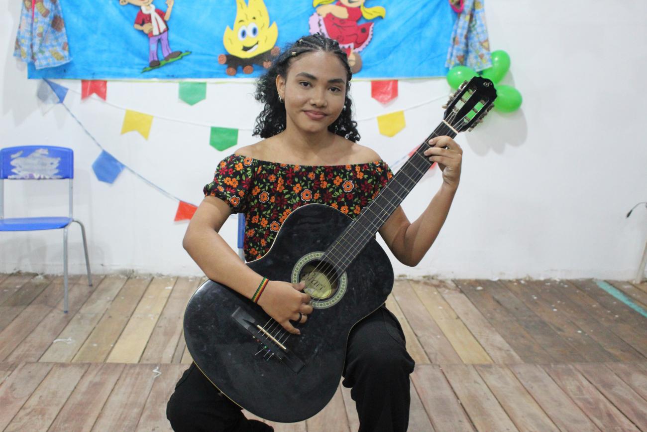 Leticia CalandriniUma das alunas beneficiada pelo projeto, Leticia Calandrini, 16 anos, conta que descobriu a sua vocação musical quando era criança quando começou a tocar violão aos 10 anos. Ela conta ainda que conseguiu aprimorar as técnicas no instrumento somente após iniciar os estudos no projeto, em 2019, no Polo Sociedade Beneficente Cristo Redentor, no bairro do Coqueiro, em Ananindeua, na Região Metropolitana de Belém.
