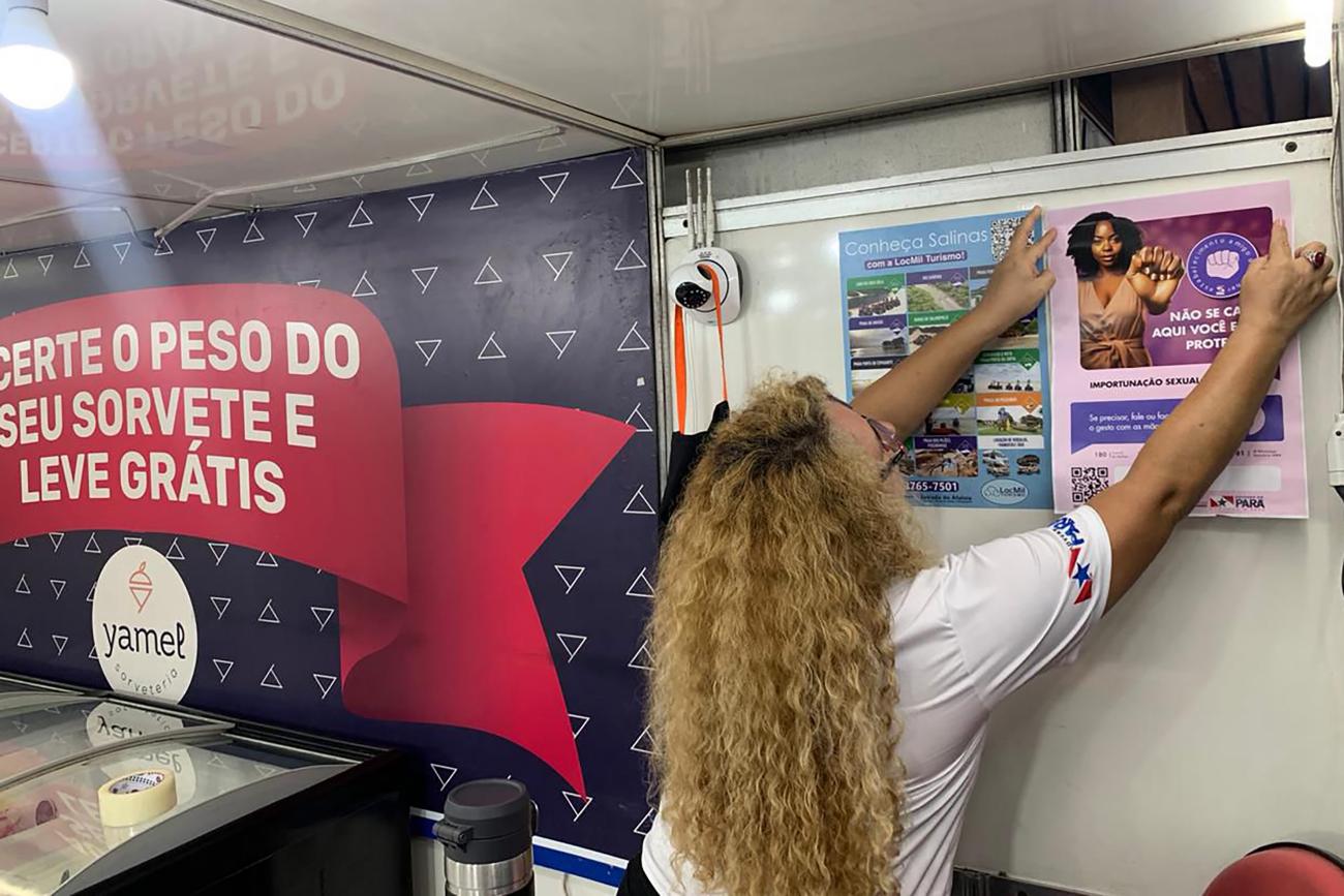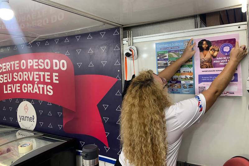 O município de Salinópolis, no nordeste paraense, um dos destinos mais procurados pelos paraenses durante o veraneio, recebeu a equipe da Secretaria no último final de semana (12, 13 e 14 de julho), que realizou abordagens nos bares, restaurantes e barracas, levando informações sobre o protocolo, a fim de garantir o acolhimento de mulheres vítimas de assédio, importunação sexual ou qualquer outra forma de violência.