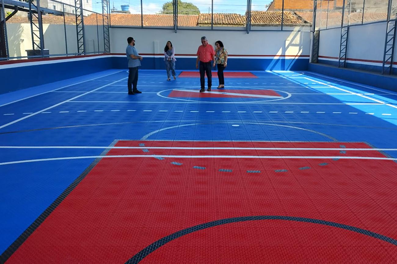 “Esse piso possui uma vida útil muito maior em relação aos pisos convencionais utilizados nas quadras do estado, que usualmente são de concreto com pintura, garantindo assim uma grande redução de gastos a longo prazo. Sem contar com a qualidade em termos táteis que auxilia na melhora do desempenho esportivo dos alunos”, observou a Diretora de Obras da Fadep, Danusa Souza.