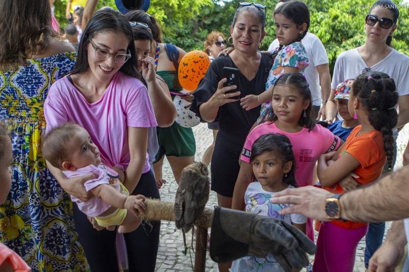 A programação do próximo domingo (21) iniciará às 9h da manhã, com o Projeto “Momento EcoZoo”, quando a equipe de tratadores do Parque apresentará às crianças e ao público o rapinante batizado como ‘Alba’, um Geranoetus albicadatus, popularmente conhecido como Gavião de Cauda Branca. Será possível conhecer a ave de perto e saber curiosidades sobre o animal. O projeto tem como objetivo estimular, principalmente entre as crianças, o respeito e o cuidado com a natureza.