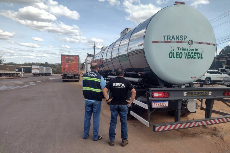 Fiscais de receitas estaduais da Secretaria de Estado da Fazenda (Sefa), lotados na unidade de controle de mercadorias em trânsito do Itinga, localizada em Dom Eliseu, nordeste paraense, apreenderam, no dia 26/07, 20 toneladas de óleo de palma refinado no valor de R$ 146.825,5. A mercadoria tinha nota fiscal emitida em 25/07/2024 às 12h18 com origem em Paragominas (PA) e destino a Jaboatão dos Guararapes (PE).