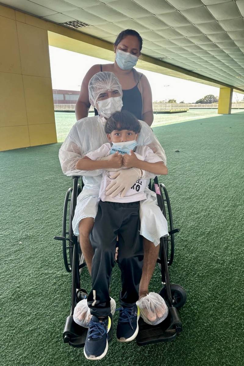 Mesmo durante o isolamento necessário, Elton viveu um momento muito emocionante, quando finalmente pôde se reencontrar com o filho Maelton, de 5 anos. Pai e filho estavam sem se ver pessoalmente há 25 dias. O encontro foi promovido pela equipe multiprofissional do hospital, na área do jardim do HRPC.