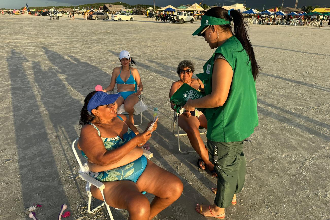 Ideflor-Bio leva educação ambiental e conscientiza veranistas na Praia do Atalaia em Salinópolis