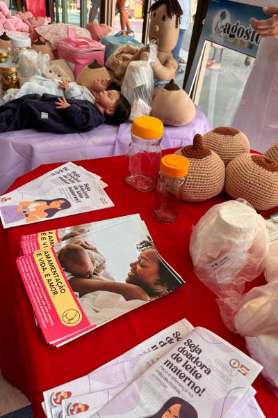 Com a distribuição de panfletos explicativos e estações para simulações do ato de amamentar, a Fundação Santa Casa realizou nesta quinta, 1º de agosto, uma ação alusiva ao Agosto Dourado, que simboliza a luta pelo incentivo à amamentação.