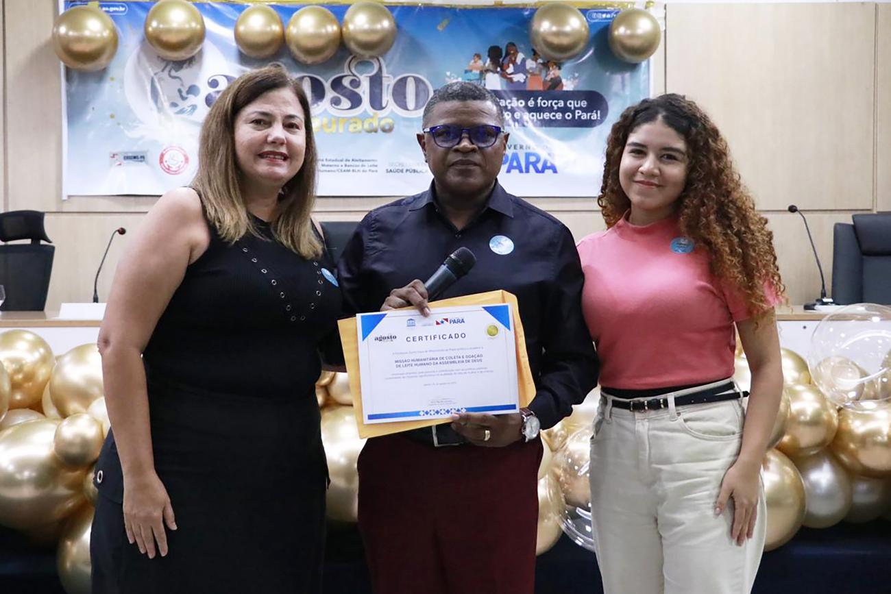 Durante a solenidade, a nutricionista Cynara Souza, gerente do Banco de Leite Humano da Fundação Santa Casa de Misericórdia do Pará, entregou certificados a entidades que apoiam a amamentação, ou seja, o Coral Saúde e Vida “Maria Helena Franco” da Santa Casa, a Missão Humanitária de Coleta e Doação de Leite Humano da Assembleia de Deus e o Corpo de Bombeiro Militar – Projeto Bombeiros da Vida.