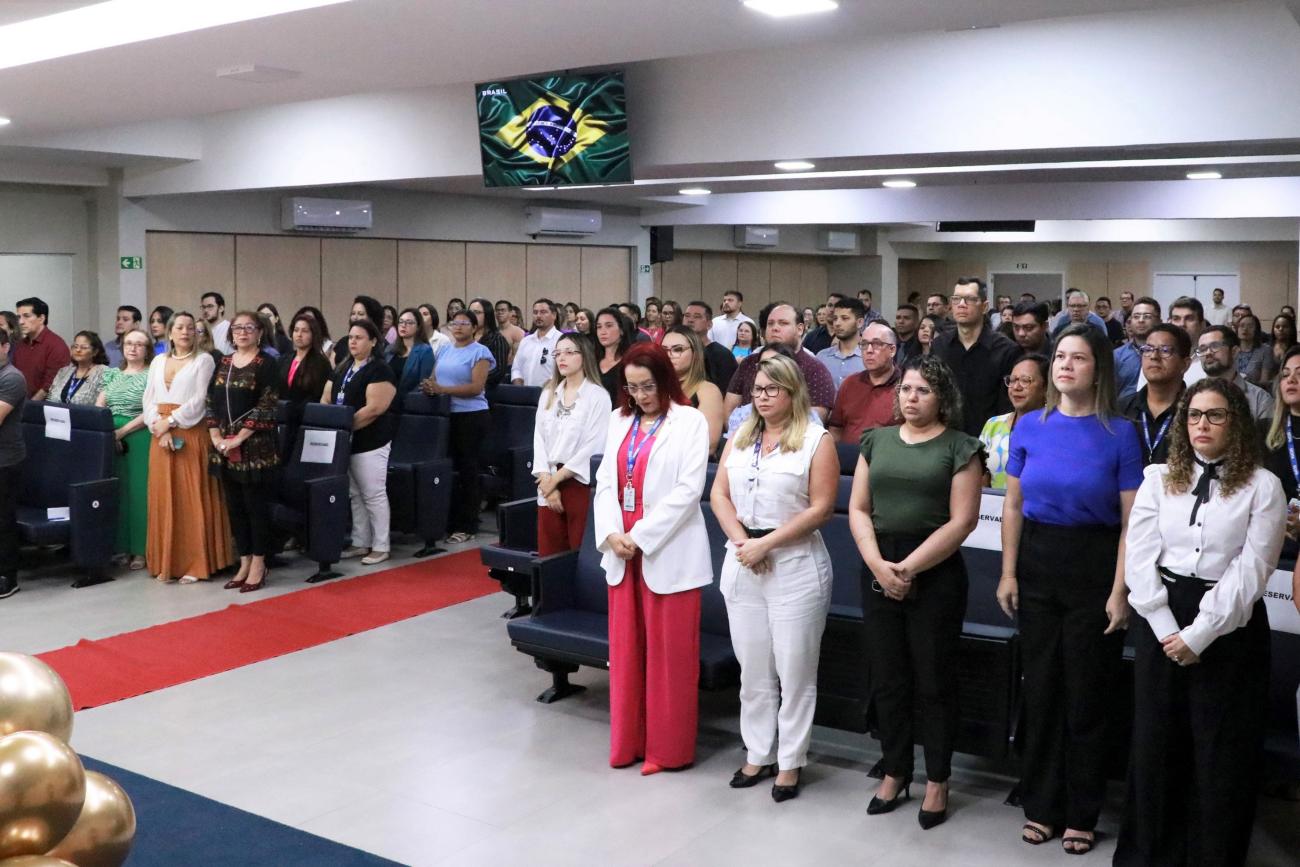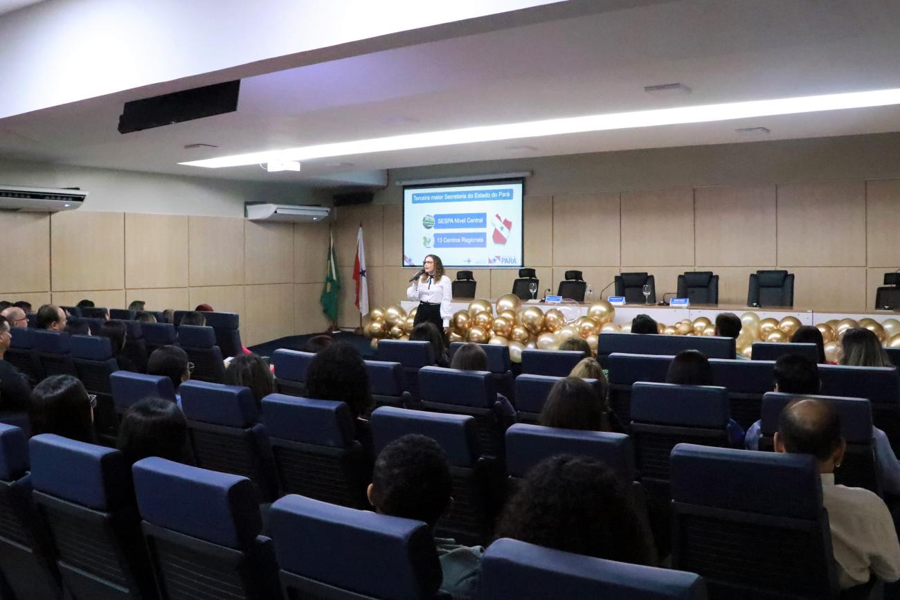 Durante esse primeiro momento de acolhimento, a diretora de Gestão do Trabalho e da Educação na Saúde da Sespa, Kelly Silveira, conduziu uma série de apresentações aos novos servidores, que incluiu o organograma da Secretaria e breves pareceres de diretores da Sespa presentes na solenidade.