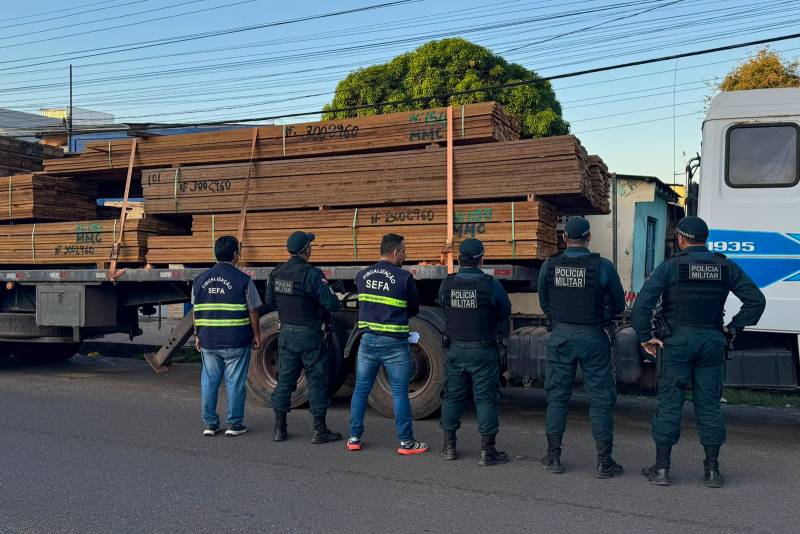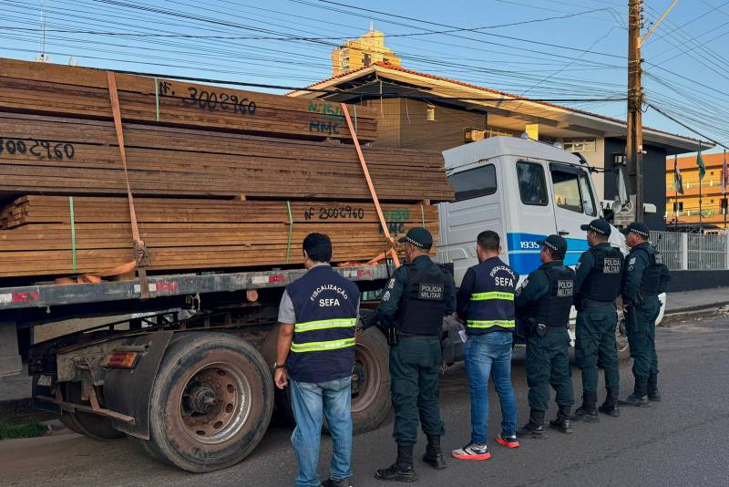 “A equipe de fiscais da unidade Sefa do Tapajós fiscalizou vários portos do município de Santarém e durante a operação foi abordada uma carga carregando 18,79 m3 de madeira serrada da espécie Ipê sendo transportada por uma carreta bitrem. Na checagem da documentação fiscal foi constatado o não recolhimento do imposto estadual e a inidoneidade da Guia Florestal que acompanhava a carga. Imediatamente a equipe da Sefa acompanhada da Polícia Militar do Estado, se dirigiu até à Secretaria de Estado de Meio Ambiente e Sustentabilidade (Semas), em Santarém, que após a verificação do documento confirmou a falsidade da Guia Florestal apresentada”, contou o coordenador da unidade Sefa, Maycon Freitas.
