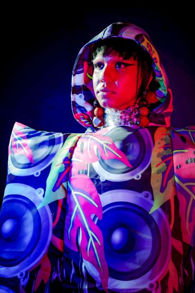 "A exposição não apenas honra as raízes culturais ancestrais das comunidades ribeirinhas amazônicas, mas também projeta essas tradições em um futuro imaginativo e dinâmico", explica o artista. Um dos destaques da mostra são as "aparelhagens vestíveis", obras que refletem a história visual da Amazônia e incorporam estéticas contemporâneas e tecnológicas. Para Jonathan, essas aparelhagens são mais do que simples instrumentos de entretenimento, "são manifestações tangíveis da resiliência e criatividade das comunidades ribeirinhas", detalha o artista.