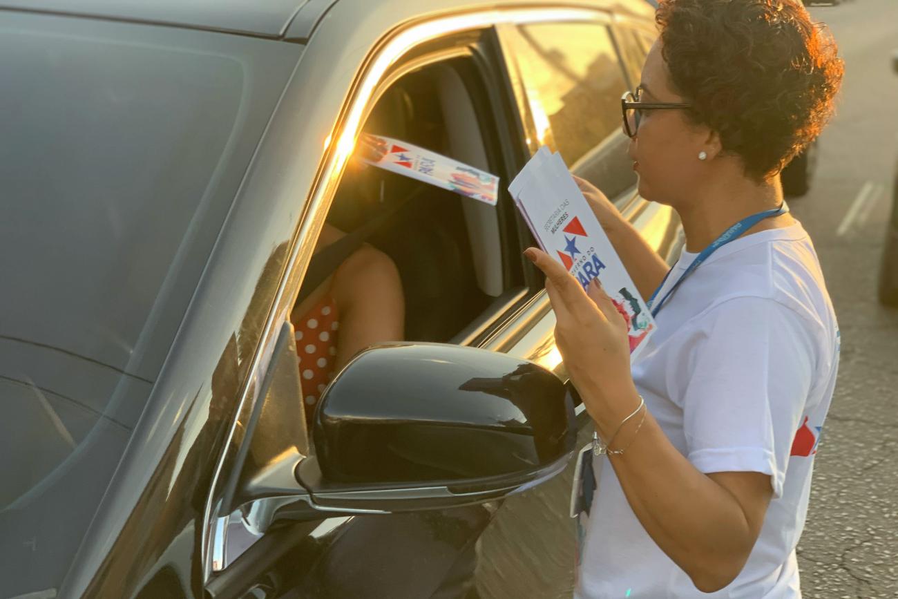 Ao da semana, equipes da Pará Paz conversaram e distribuíram materiais informativos para motoristas e pedestres, sobre os direitos das mulheres
